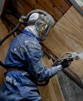 De gevel wordt schoongemaakt en klaargemaakt voor isolatie